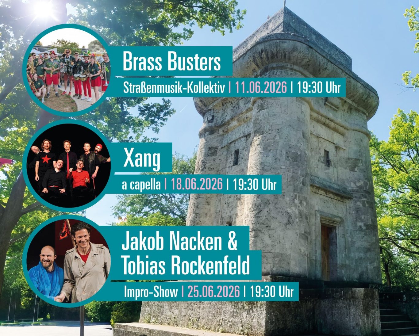Auch 2026 wird der Bismarckturm Tübingen wieder zur Bühne für Kunst und Kultur unter freiem Himmel!